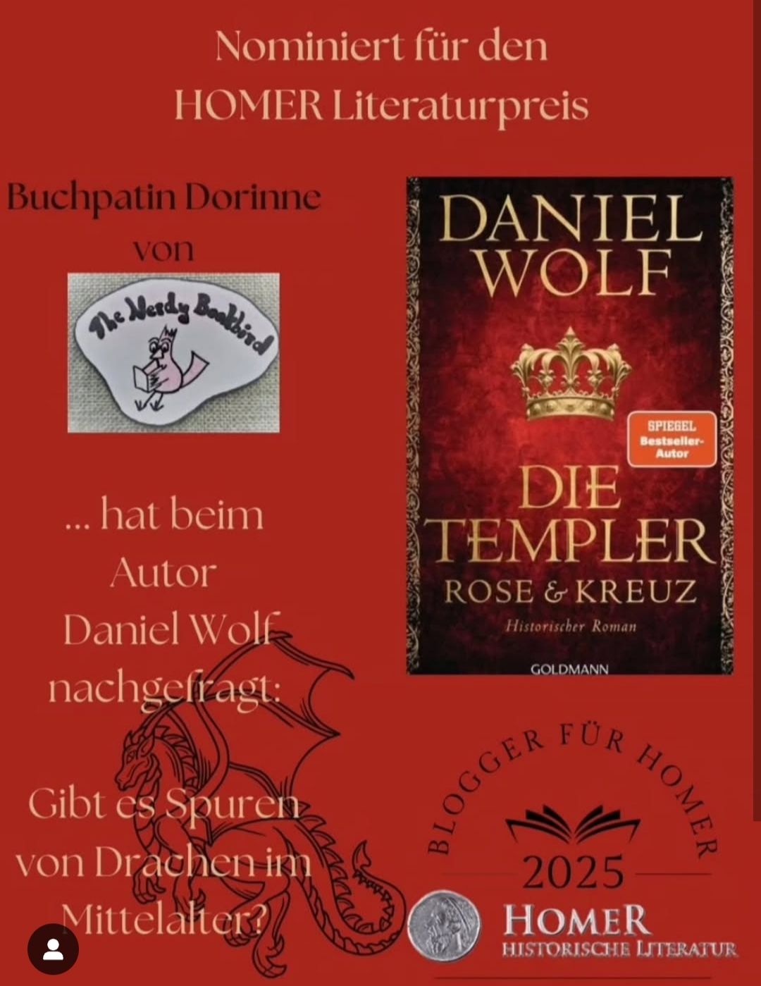 Dorinne war gemeinsam mit dem Autor Daniel Wolf unterwegs zu seinem historischen Roman “Die Templer – Rose & Kreuz” auf den Spuren der Drachen. Der Beitrag wird durch Blogger für HOMER 2025 unterstützt.