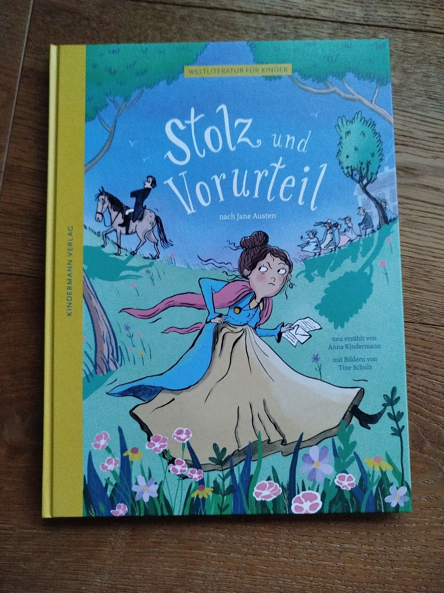 Ich bekam vom Kindermann Verlag das PDF, zu Stolz und Vorurteil nach Jane Austen, zum Reinlesen und war von der neuen Erzählung der Verlagsleiterin Anna Kindermann restlos begeistert. Der Verlag ermöglicht für Kinder die Weltliteratur auf kindgerechte Darstellung mit Illustrationen besser und intensiver zum kennen lernen, als wir zur damaligen Zeit. Natürlich ist Anna Kindermann dem wichtigsten Erzählstrang aus der Literatur von Jane Austen beigeblieben. Sie hat die Gefühlskette, wie sich Elisabeth Bennet und Mr. Darcy kennen gelernt haben und wie sie zueinander fanden sehr schön beschrieben und durch die Illustrationen von Tine Schulz ist hier zum 250. Geburtstag Jane Austen ein sehr schönes farbiges Buch entstanden. Absolute Leseempfehlung nicht nur für jüngere Leser/Leserinnen, sondern auch für die älter gewordenen Leserschaft!